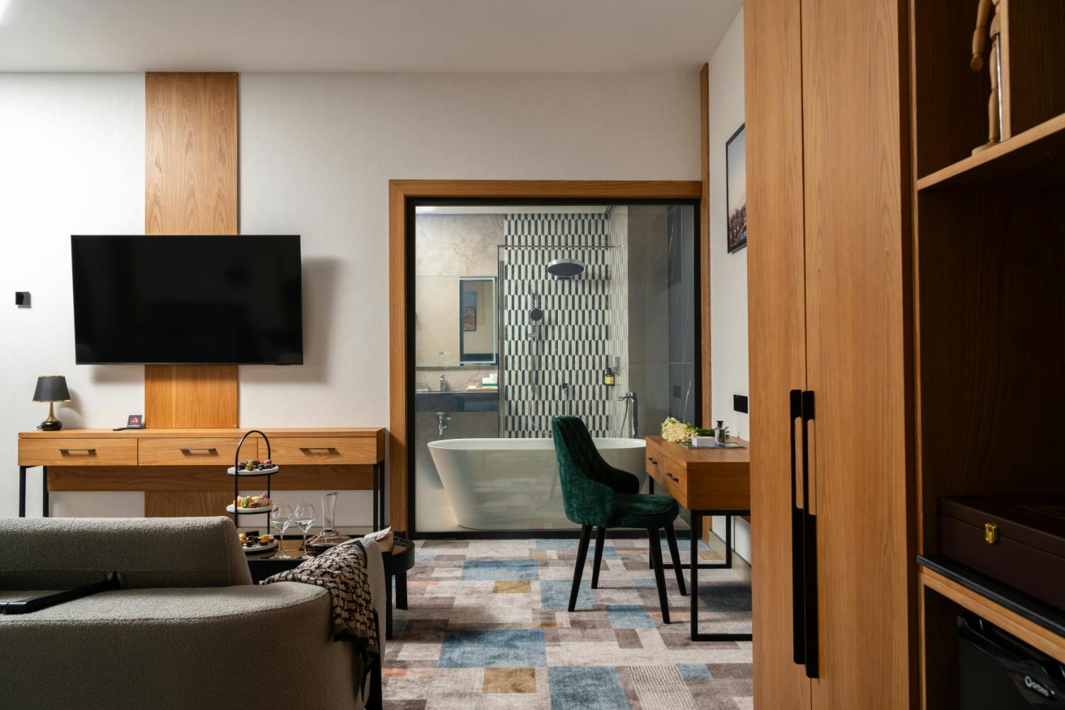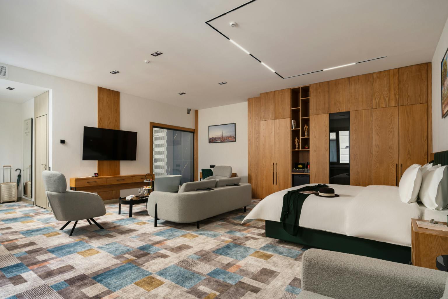 The Grand Suite offers 75 m² of refined comfort, making it an excellent choice for families, couples, or friends traveling together. With a separate living area, elegant furnishings, and soundproofed interiors, it provides both privacy and relaxation for up to four guests.